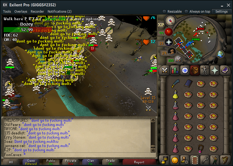 Remy Posted August 3, 2019 Posted August 3, 2019 Forums | Teamspeak | Discord Saturday, 3rd August: Final Ownage Elite massed up ~75 elites for a very easy F2P trip. Today every single other pure clan peaked at around 45 (pathetic) so we chased up and hit any clans we could find in the wilderness. We were expecting the Anti-FOE Alliance to fight back but they wouldn't even attempt to team with each other today. Another day where FOE reigns as #1 and it was easy as fuck. ~Erik ~Isaak