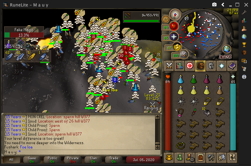 K2P Posted July 5, 2020 Posted July 5, 2020 Forums | Teamspeak | Discord Sunday, July 5th: Final Ownage Elite massed up 85 Elites to clear the P2P Wilderness. Today FOE showed the whole Pure Community why they should never challenge us at GDZ. Despite being down 30+ on TS, we completely cleared Zenith, Rage, and many other clans that desperately wanted to see us lose. FOE will never break, and today we showed why we're #1. ~K2P ~Brian ~Pure Fiction ~Dean