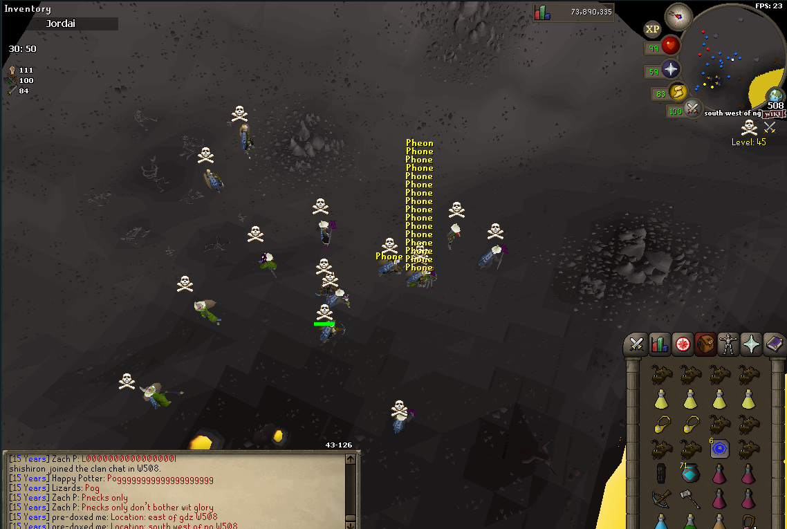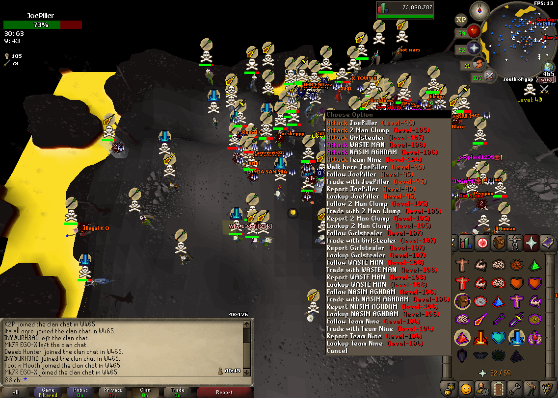 Sunday, September 6th: Final Ownage Elite massed up 73 Elites for our scheduled P2P Trip. Seeing that we were matched with almost every clan, we were eager to get a clean 1v1 and show the pure community why we are #1. Our first fight started vs Legacy at boneyard and it lasted for quite some time. Eventually it was crashed by Rage but we quickly regrouped and decided to hit it again running into other clans like Apex, Rage, and Legacy. Clearing each clan one by one, we eventually made our way down to 26 hill where we cleared any leftover members. Our notable P2P quality and fast returns gave us the competitive edge which allowed us to clear all 3 clans.