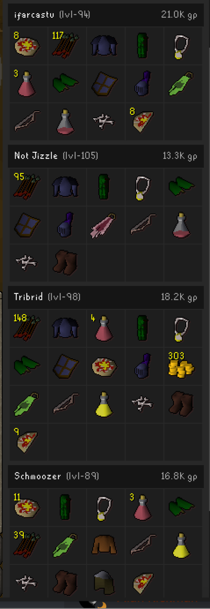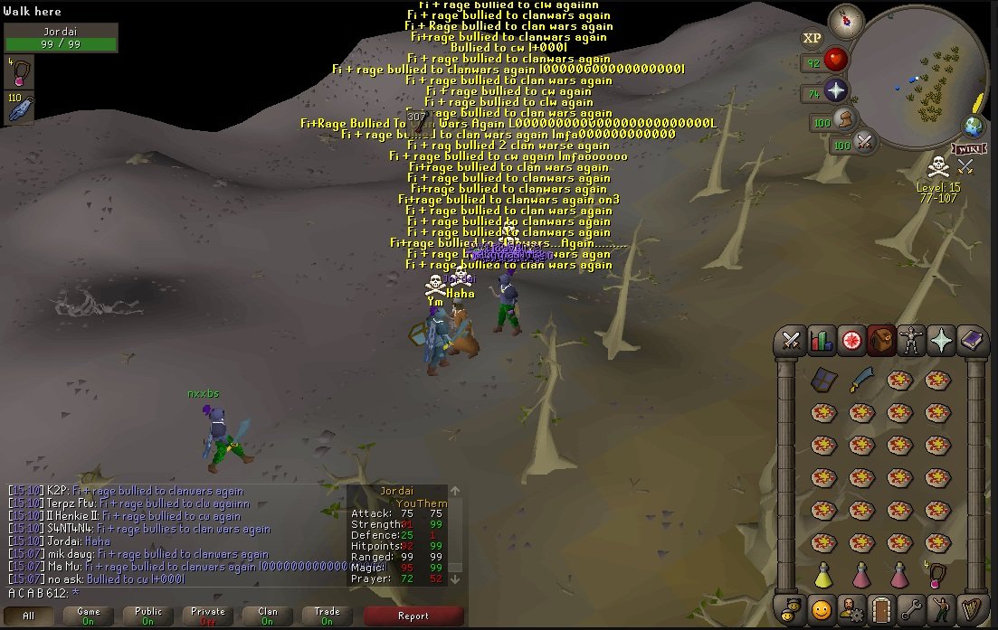 Final Ownage Elite fully cleared the wilderness multiple times all in one inventory. Our solid war tactics and strategy carried us to victory throughout the return fight until the wilderness only showed Team-30 Capes. No clan was a fair match for FOE this Saturday. Rage, Fatality and Legacy with their demoralized ranks, shitty member list and lack of brain cells left them scattered and looking for excuses to end the misery. Fucking easy day bullying Leeboo and his shit clan. After his clan got completely humiliated he made the weak call to end early and went to clan wars with Rage.
